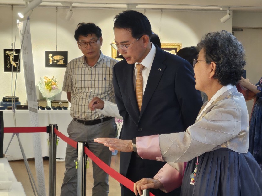 김옥수도의원님도 너무 좋다고 하시면서 작품설명을 진지하게 듣고 계시는 장면