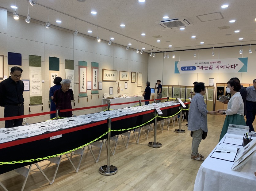 한 땀 한 땀 유묵을 자수로 표현하여 족자를 제작 하였다.