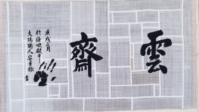 雲齋는 1910년 3월 안중근의사가 옥중에서 남긴 글씨(遺墨)이다.