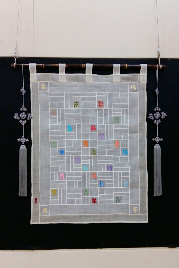 백수백복도(특수부적, 기부적이라고도 한다) 한산모시에 전통자수로 백수백복 한자(전서체)를 수 놓아 쌈솔바느질을 한 가리개 백수백복도 . . .