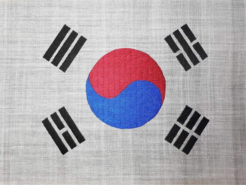 대한민국 태극기 한산모시천에 대한민국 태극기를 수놓았어요.