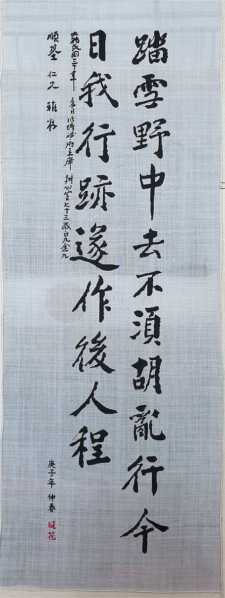 김구선생님이 73세에 직접쓰신글<역사에 부끄럽지 않은 길을 가겠다>는 뜻. [답설야중거 불수호란행 금일아행적 수작후인정] . . .