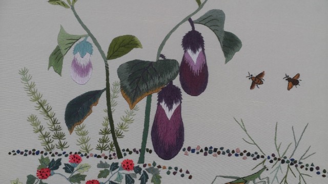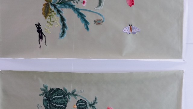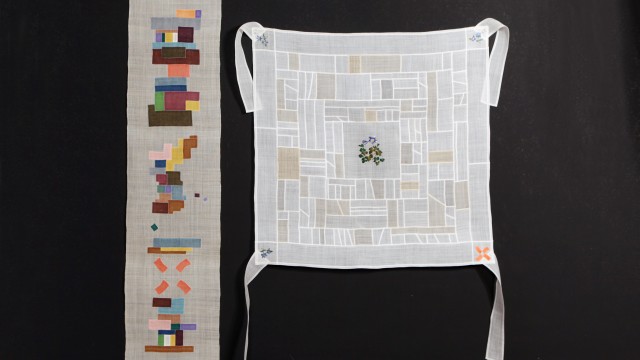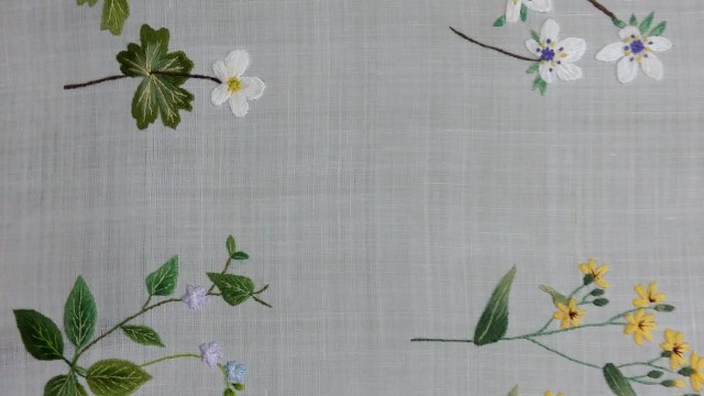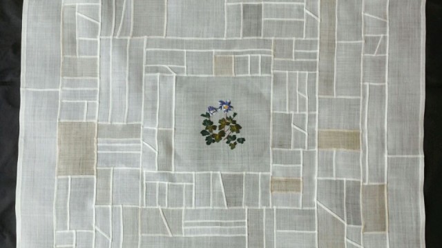 모시에 면실로 들꽃수를 놓아 쌈솔조각보를 만들다.