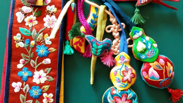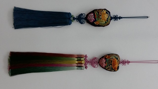 전통자수를 놓아 만든 자수열쇠패 노리개