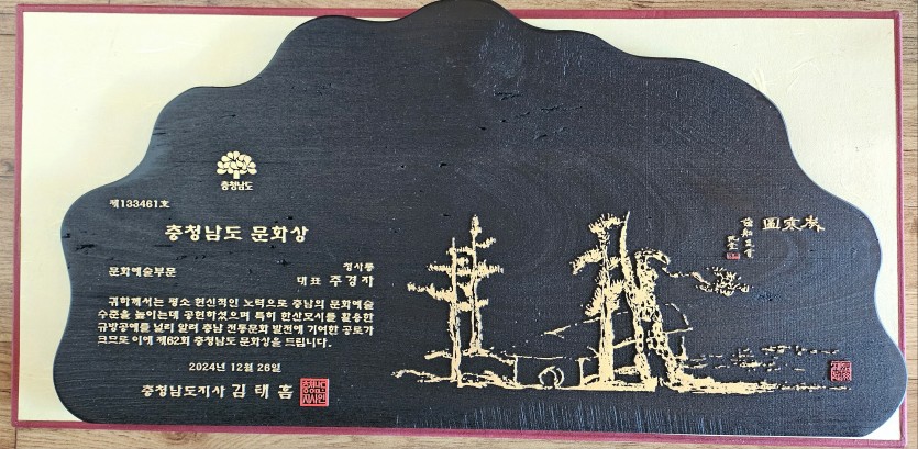 2024년 마지막달을 보내며 26일에 충남 문화상을 수상하게 되었다.