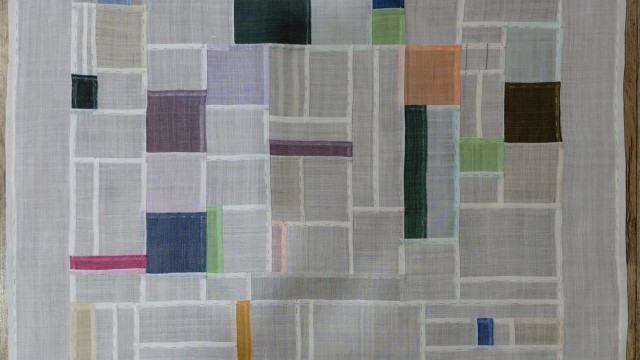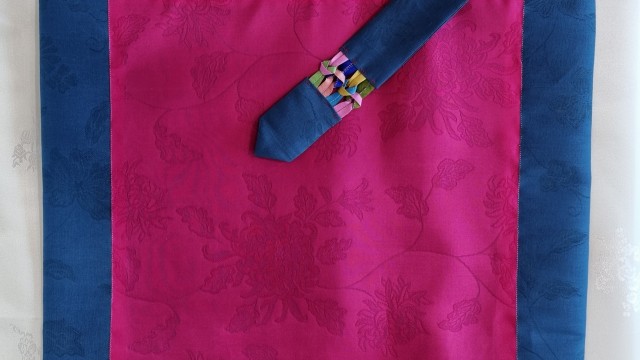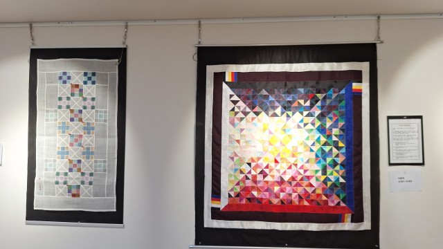 전통오방색 사선보는 1700장의 사선조각을 연결하여 만들어낸 조각보