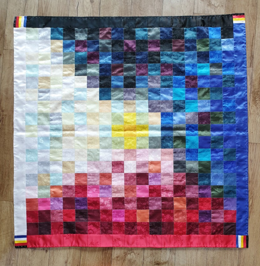 정사각형 조각천 289장과 전통오방색 직사각형 조각천20장, 직선 4장